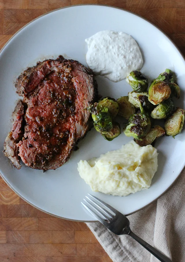 the perfect christmas dinner: porcini rubbed rib roast with horseradish cream.