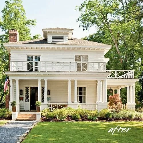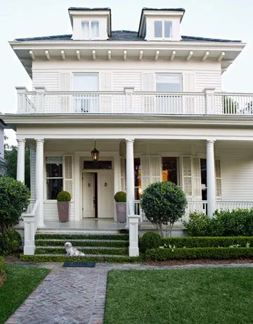 white houses with white trim.