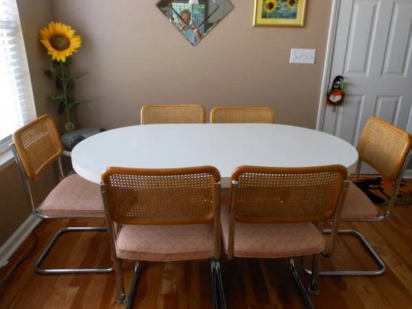 just saddle up some of those cane dining chairs and you have yourself a breakfast area.