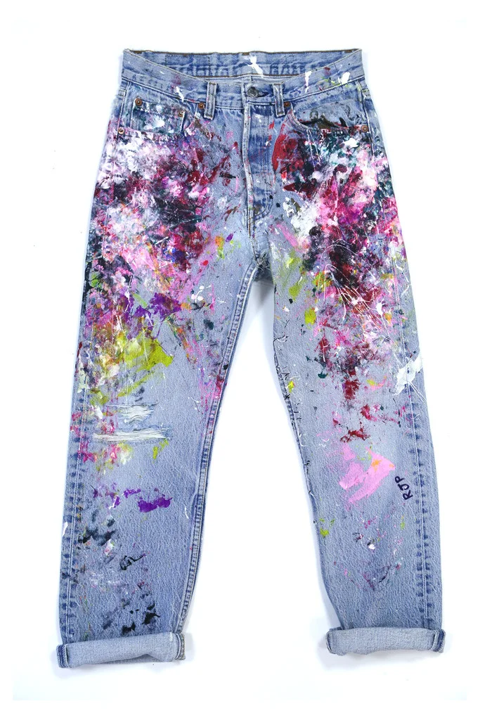 Meet RIALTO JEAN PROJECT: an eco-friendly, philanthropic denim brand specializing in hand-painted, one-of-a-kind vintage product.