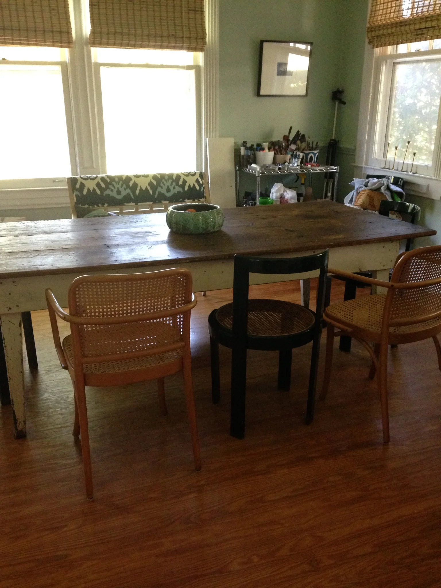 the downside is that apron under the table means the chairs have to be just so in height and sans arms.