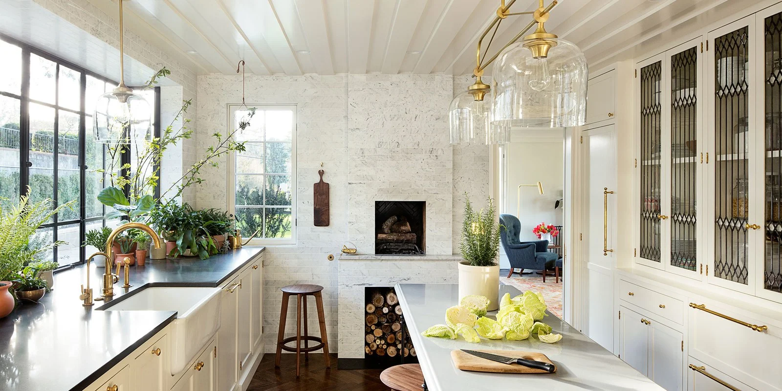 it has SO many elements that my dream kitchen has....wall of windows over the sink, wood burning fireplace for cooking AND warmth, galley-ish, white as dave and busters on a sunday. on and on and on.