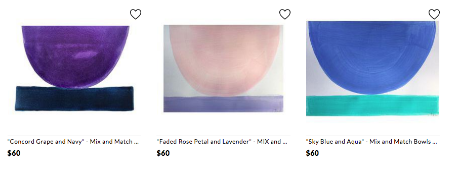 sometimes i enjoy painting bowls intended to be in a group. other times i like to paint them singly and see how YOU put them together. since it's been a while doing the latter i thought i'd pop a whole bunch of them on chairish for you to mix and match...