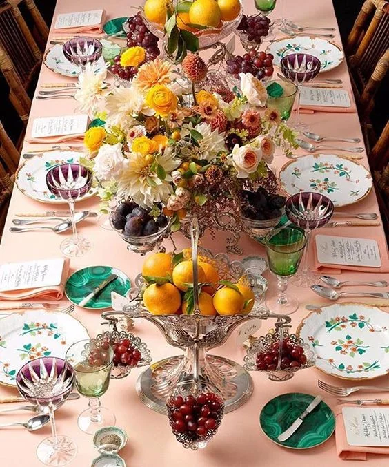 i tend to do pretty casual tables when i host dinners. but this year i want to beef it up a little with a proper table cloth, chargers, crystal, plenty of flowers and extra candles. ok maybe not chargers.