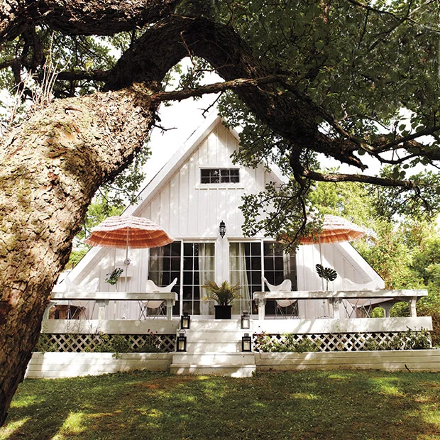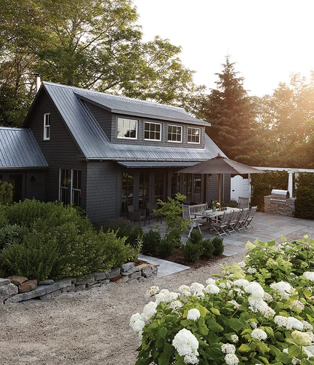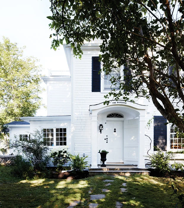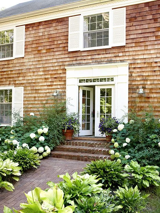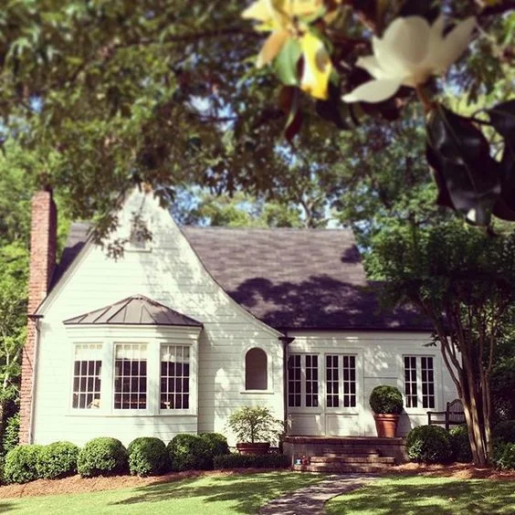 it's kind of amazing what the right paint, good grass, appropriate sconces/lighting, a healthy dose of symmetry, modern house numbers and potted plants can do for a home's facade.