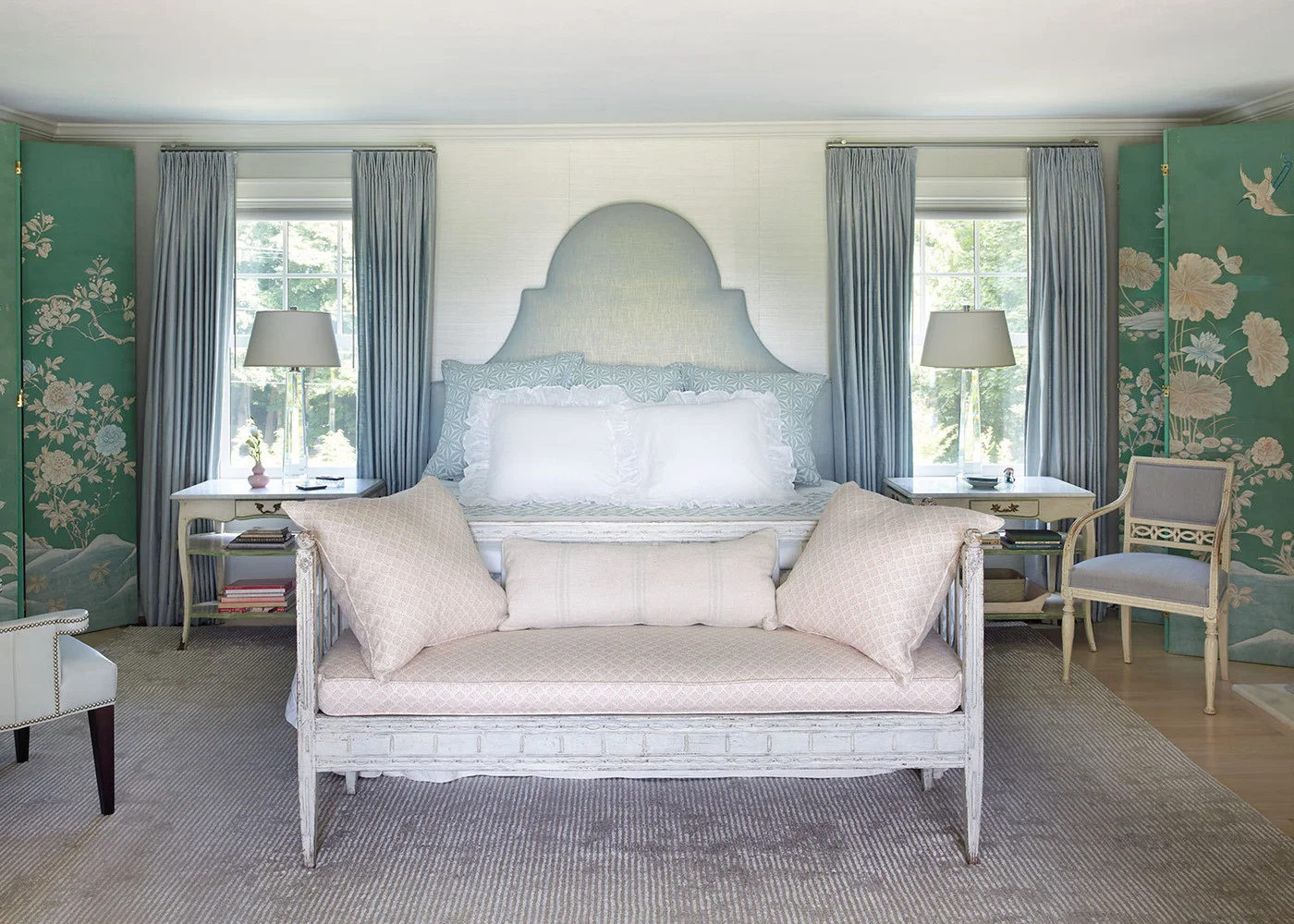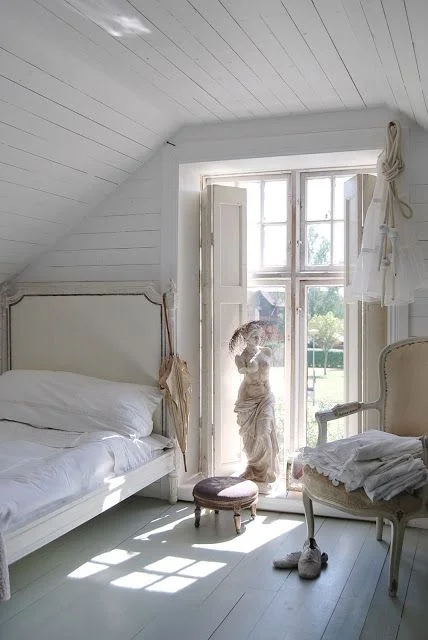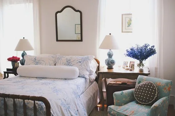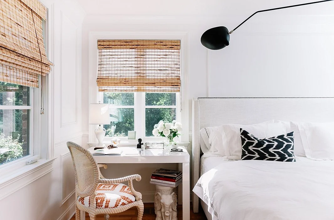a good place to start in the summer bedroom is crisp, fresh white sheets and a pretty suzani. or a bright set of shams and a soft, floral, feminine duvet. change out the art above your bed and add a zippy new catch-all and a summer scented candle to your bedside table. now dust your baseboards and wash those windows and you're all set.