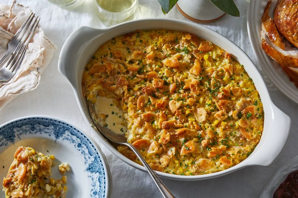 i have not made this angel corn. i had never even heard of it. i think it’s basically a corn casserole. but when i saw it and then read the recipe it was a must try. nutmeg, butter, cream, ritz crackers, chives….yes please.