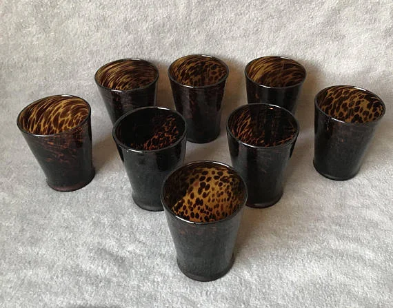 i am certain that you could plan a swell spring table with these hand blown tortoise shell glasses. set of 8 for $40.