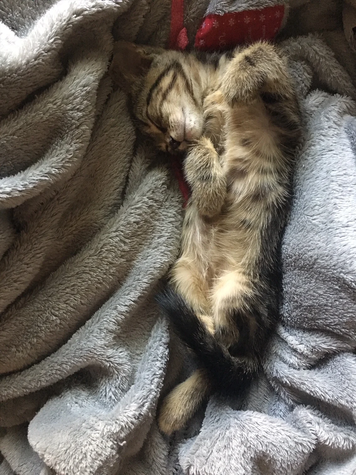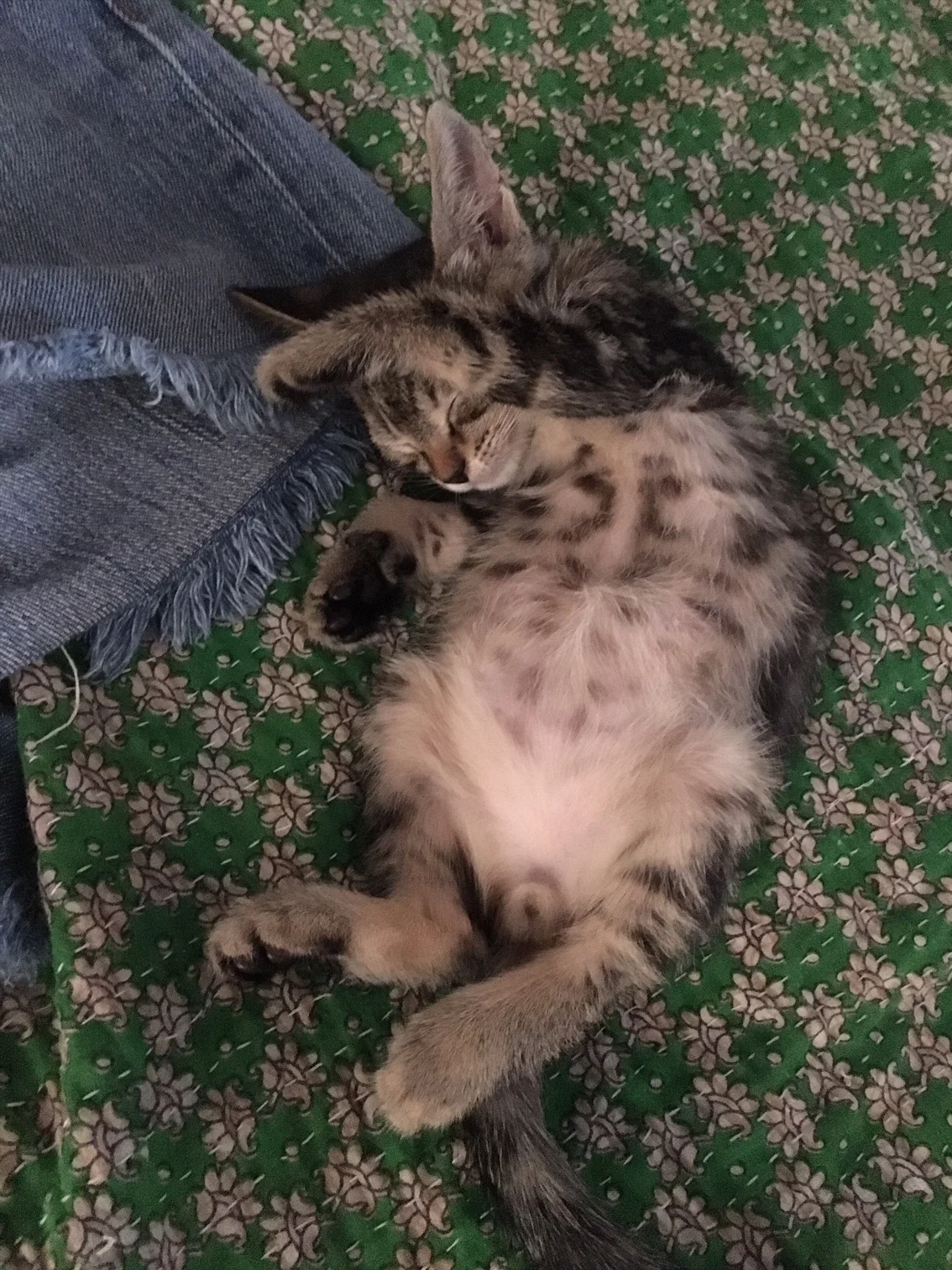 things were going great. he was almost too good. clean, smelled like fresh baked brownies, no noticeable injuries or bites or scratches etc. a few fleas which we got under control. he was chill. he ate, slept, peed and pooped. he played. he climbed. boy did he climb. he was pretty fearless.