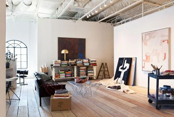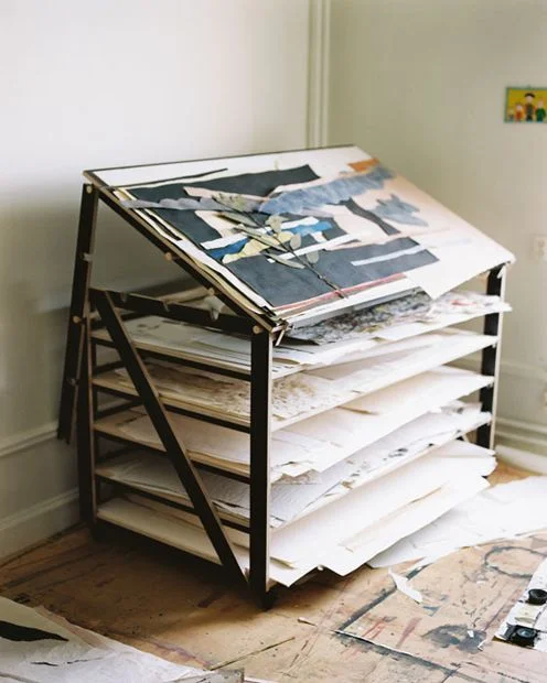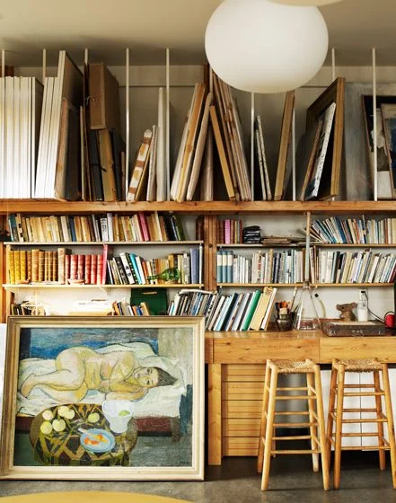 something with incredible windows/light, storage for paper (UGH THIS I NEED SO BAD), canvas storage, a white painted wood floor, a large work table etc..