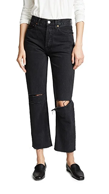 this year it’s the full length straight leg. that’s not to say all other styles are dead and gone. with the right shoe any style of denim can be current.