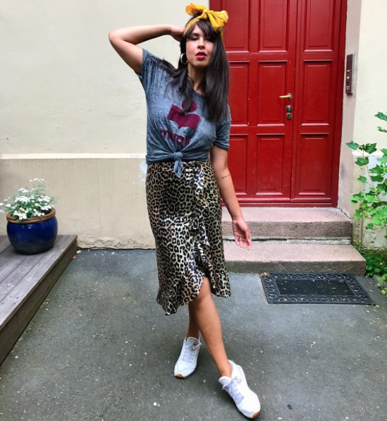 i’d like this to be my go-to look this summer. wrap skirt, t shirt, athletic shoes. fanciful head accessory maybe too.